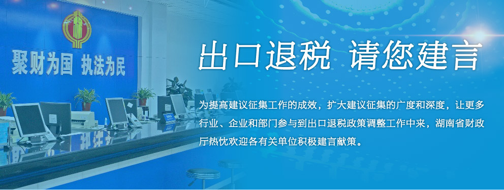 请提出建议的单位按"调整出口退税率建议范本"的格式于2015年 6月15日前有关建议反馈至省财政厅税政法规处。日博365备用网址器热忱欢迎各有关单位积极建言献策。我们将以促进我省经济发展为宗旨,充分发挥桥梁纽带作用, 竭诚为您服务。